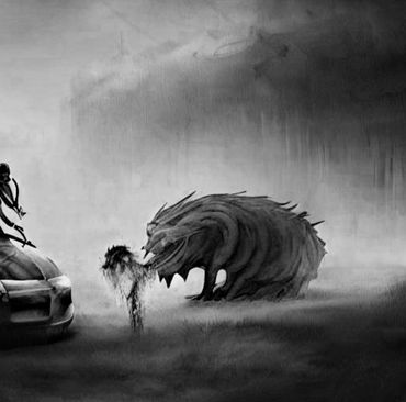 Cassie takes another long deep breath and stretches her neck from side to side. She slowly smiles at the driver, who is immediately taken aback. "Now, don't try anything dumb there, young lady; I won't hesitate to shoot." Cassie slowly begins to inch forward in her seat and looks at the driver in the rearview, and says, "but will it kill me?" she starts to cackle, and right before the driver's eyes, Cassie's face morphs into something hideous and almost out of this world.